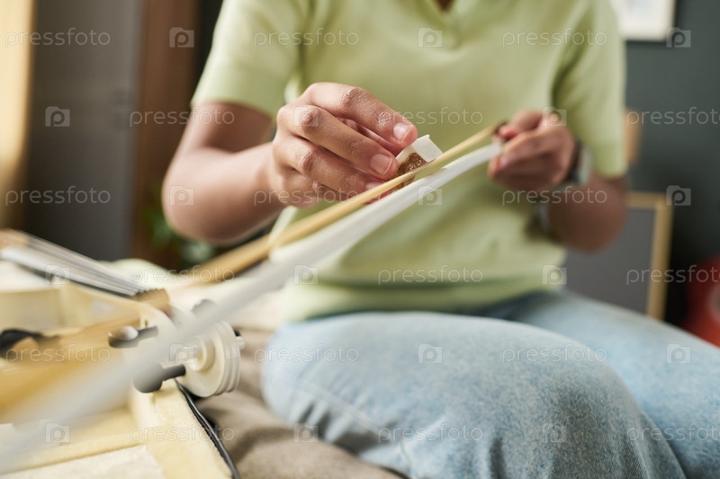 Ближайшее изображение деревянного модели самолета, выполненного вручную