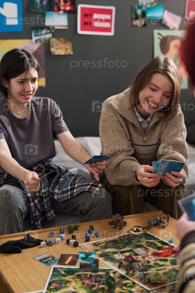 Подростки играют в настольную игру Улыбаясь