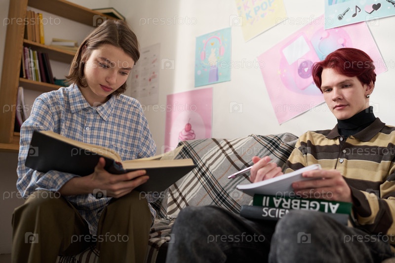 Фокусированная девочка-подросток держит открытую книгу Читать Учиться с друзьями