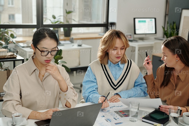 Группа женщин, обсуждающих планы на работе Встреча в офисе