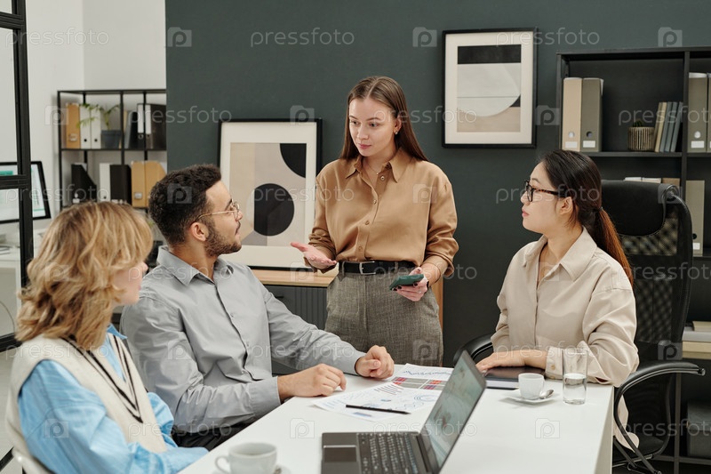 Босс-женщина разговаривает с командой коллег