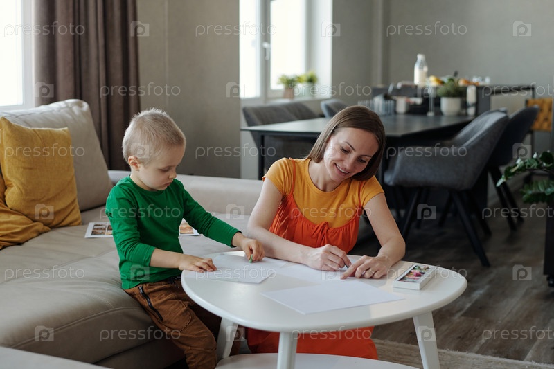 Мать рисует картины со своим счастливым сыном