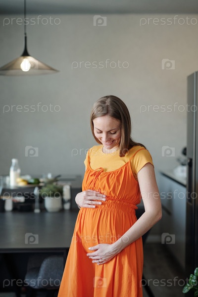 Беременная женщина, укоряющаяся на животе