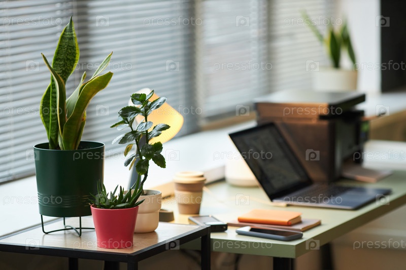 Поточные растения в офисе зеленые