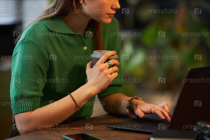 Молодая женщина работает на ноутбуке в офисе
