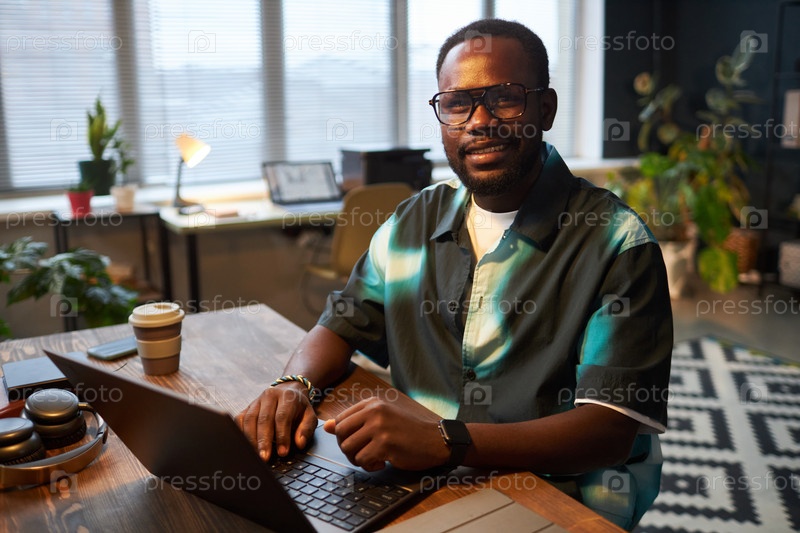 Африканский американский менеджер, работающий на ноутбуке
