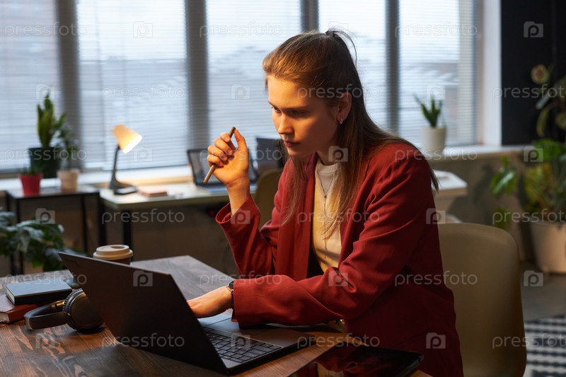 Женщина, работающая на ноутбуке в офисе