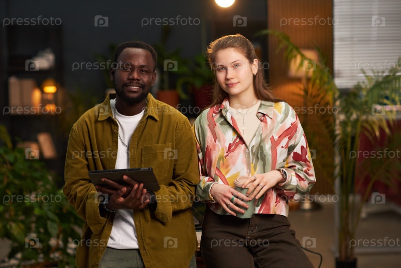Молодые коллеги, работающие в команде в офисе