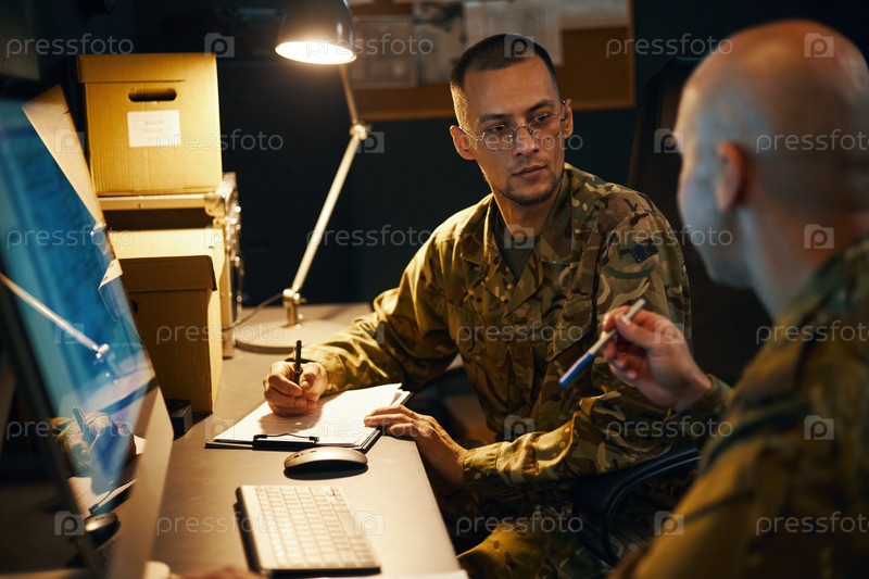 Военные офицеры, сотрудничающие в командном центре