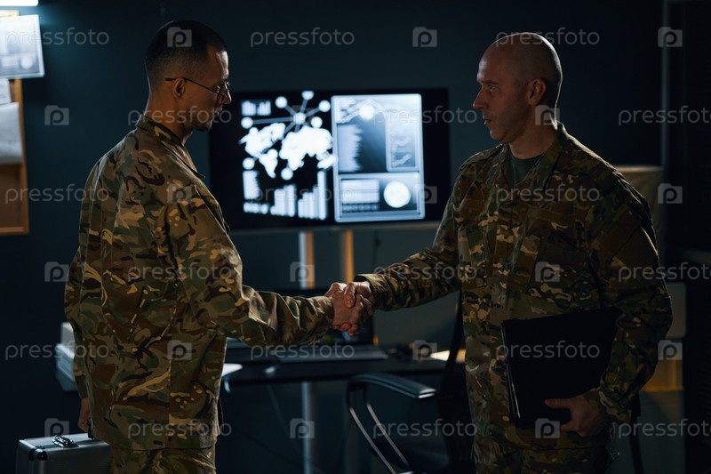 Встреча среди военнослужащих в темной комнате