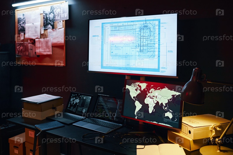 Изучение чертежей и карты мира на мониторах
