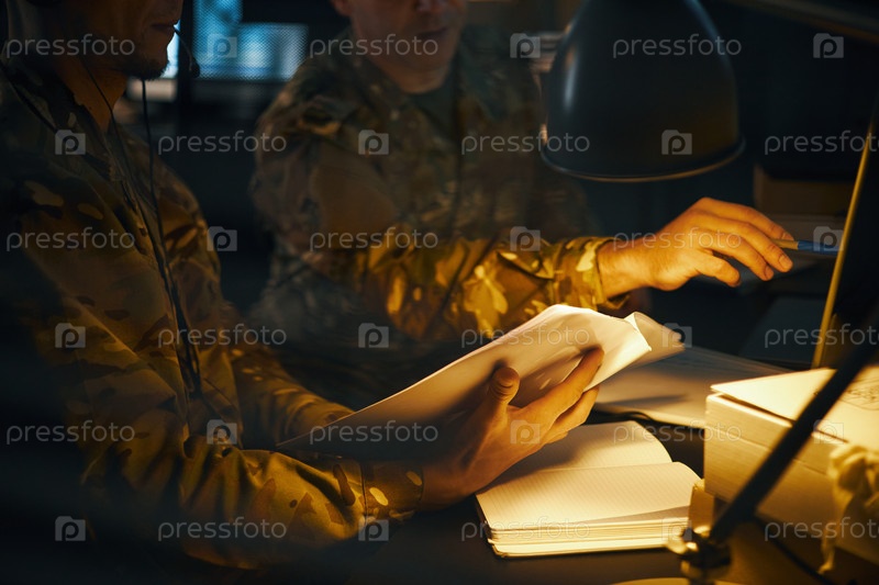 Просмотр документов под освещением настольной лампы