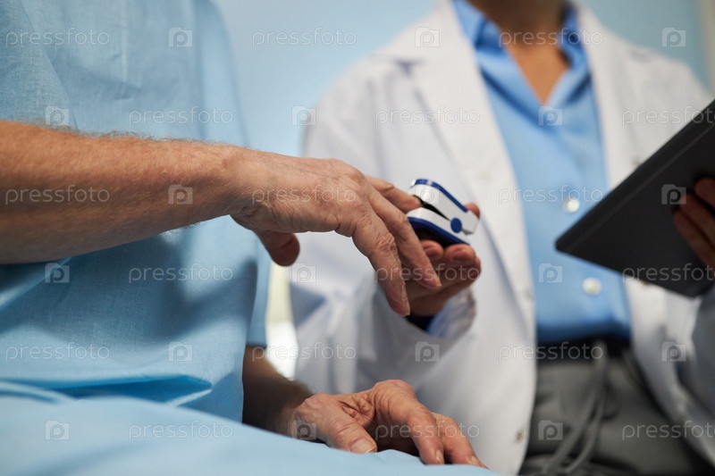 Врач, осматривающий пациента с медицинским устройством в клинике