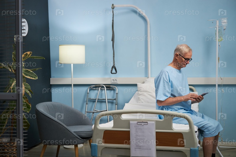 Пожилой мужчина получает медицинское лечение в больничной комнате