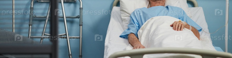 Пациент отдыхает в больничной постели, получая медицинскую помощь
