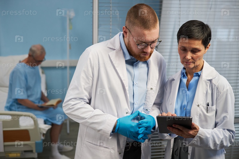 Медицинские специалисты обсуждают записи пациентов в больнице