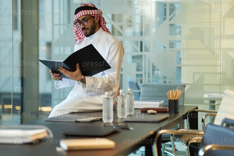 CEO Ближнего Востока Young Reading Documents
