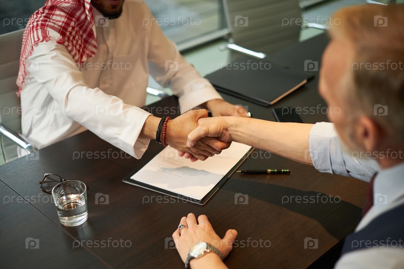 Двое мужчин пожали друг другу руки после подписания контракта