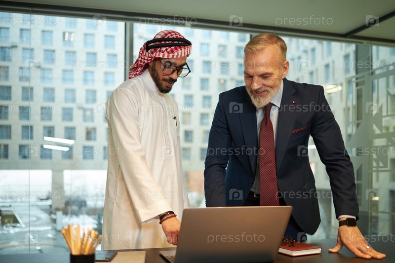 Бизнес-предприниматели, использующие ноутбук в офисе