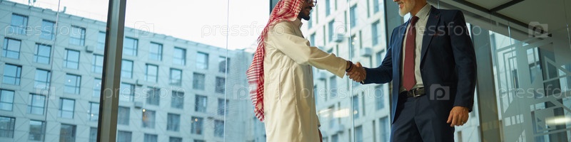 Два деловых партнера приветствуют друг друга Header