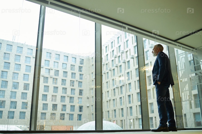 Бизнесмен смотрит из панорамного окна