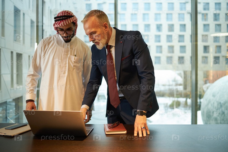 Два разных бизнесмена смотрят на экран ноутбука