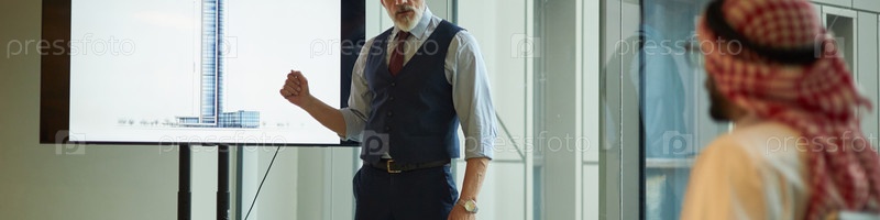 Архитектор дает презентацию арабскому инвестору в Office Header Architect