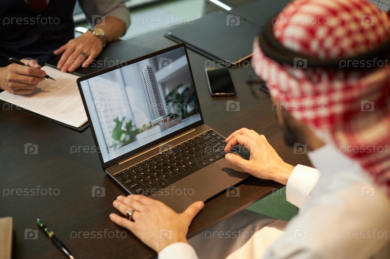 Непризнанный архитектор использует ноутбук во время совещания