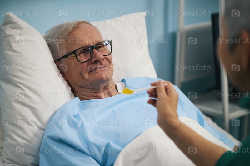 Женщина, кормящая мужа в больнице