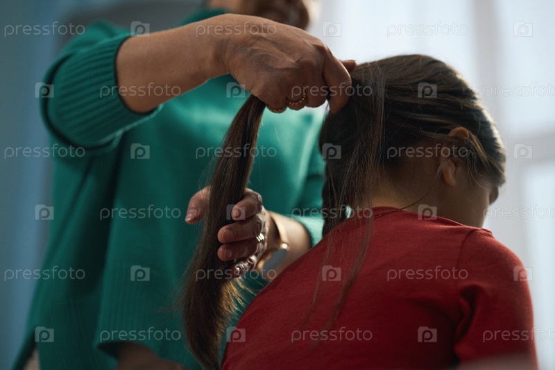 Бабушка делает прическу своей внучке