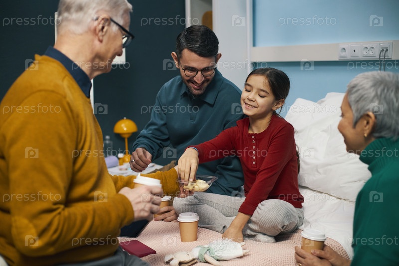 Родственники, посещающие больную девочку в больнице