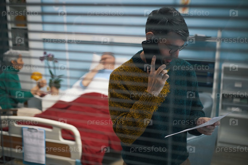 Мужчина, имеющий консультацию по телефону о болезни