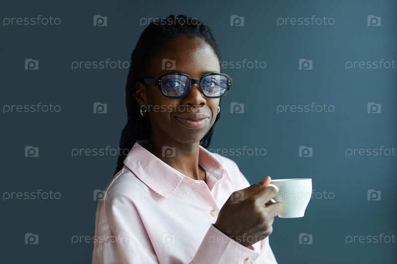 Афроамериканская бизнесвумен с чашкой кофе
