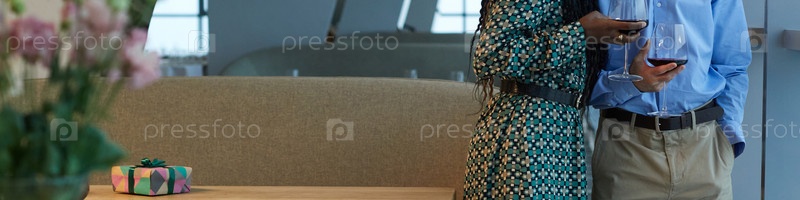 Пара пьет вино во время встречи в ресторане