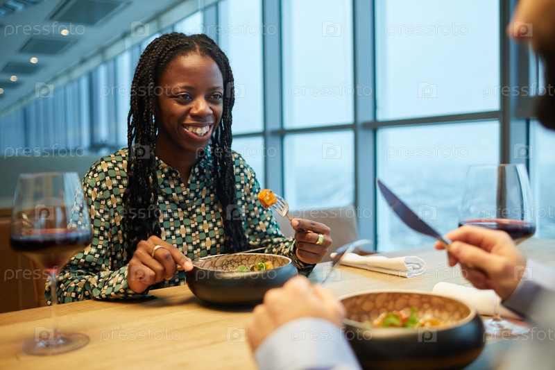 Женщина, ужинающая с мужчиной в ресторане