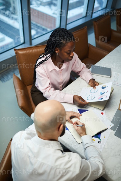 Деловая женщина, рассматривающая финансовый документ на встрече