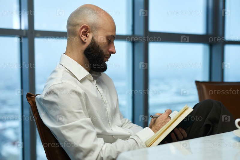 Бизнесмен делает заметки в блокноте