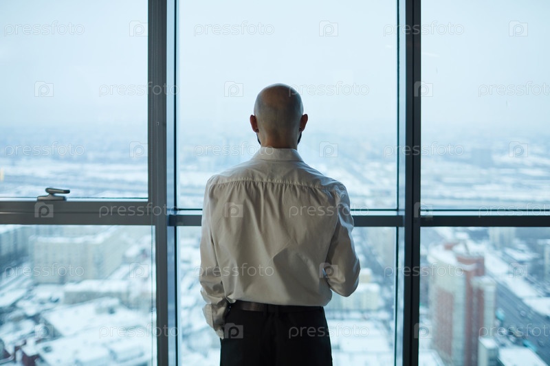 Бизнесмен смотрит на вид города