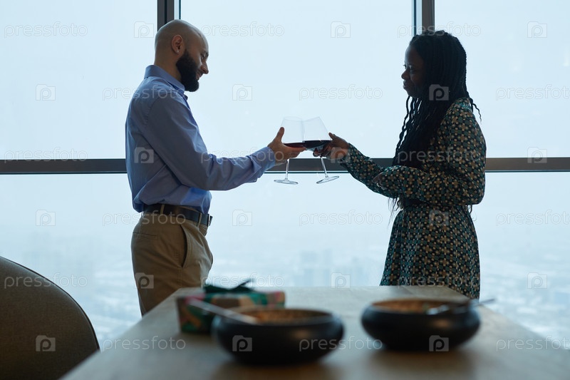 Пара пьет вино в ресторане