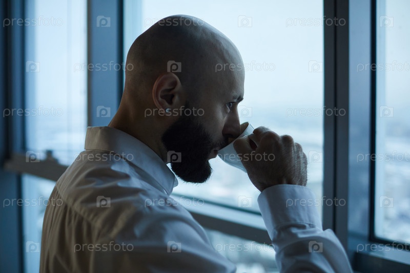 Бизнесмен наслаждается чашкой кофе