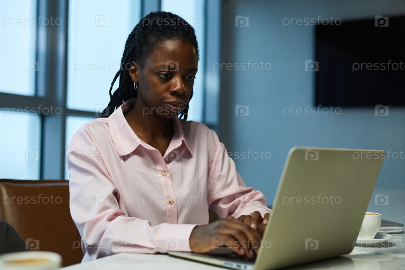 Деловая женщина, использующая ноутбук на работе в офисе