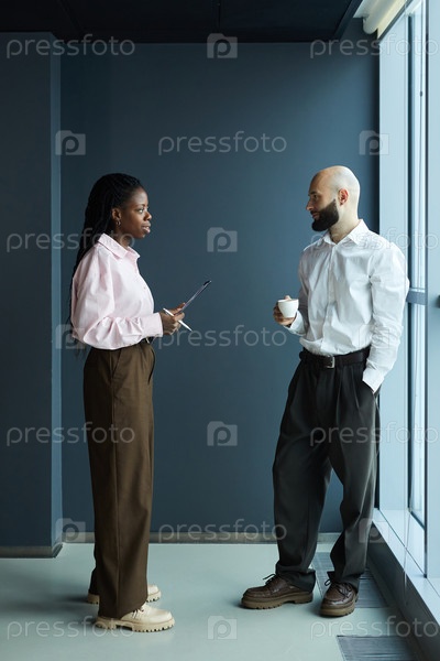 Супружеская пара разговаривает в офисе по делам