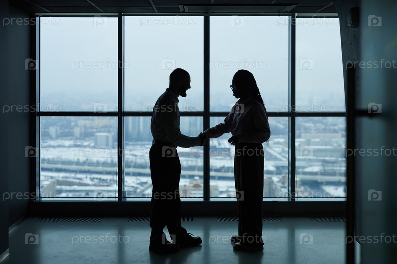 Коллеги пожали друг другу руки в офисе