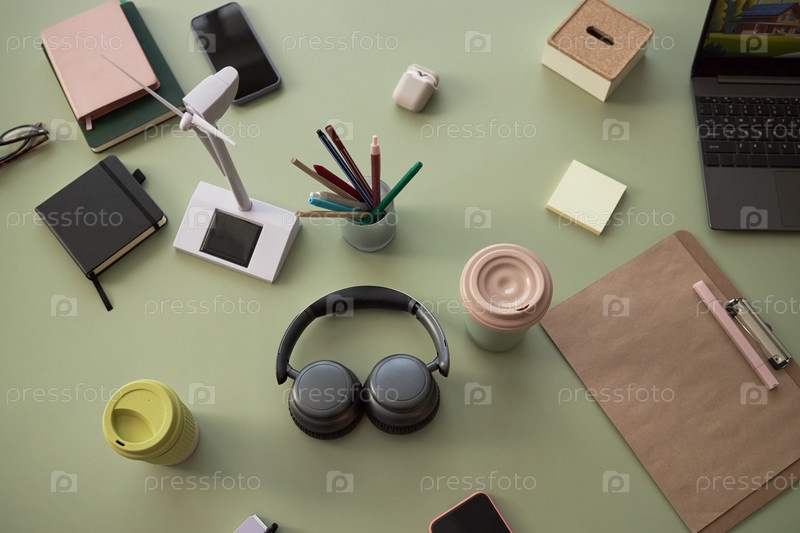 Рабочее место с современными канцелярскими принадлежностями и гаджетами