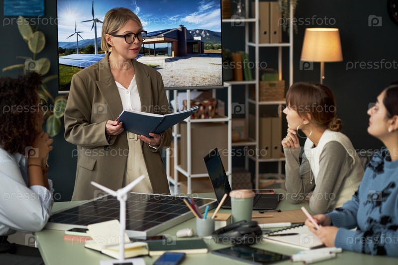 Деловая женщина читает отчет на встрече