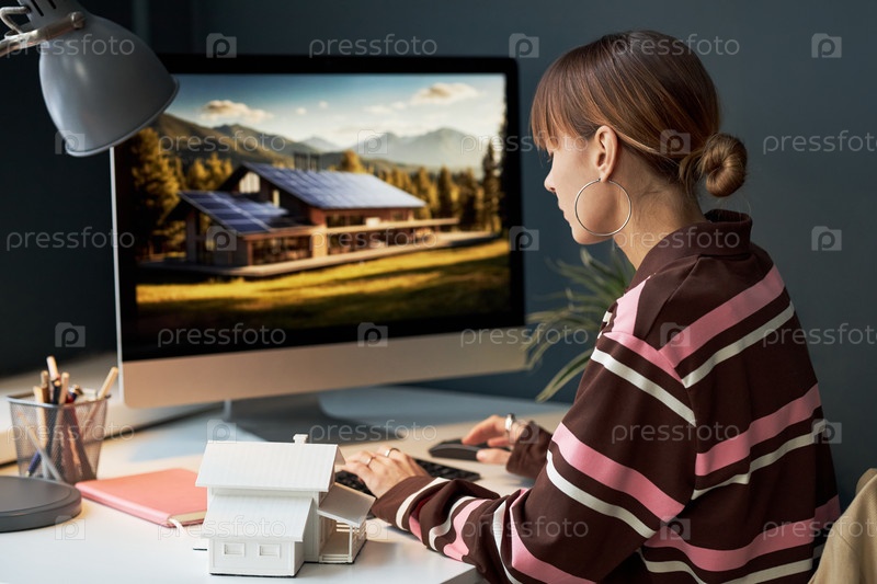 Инженер, проектирующий проект дома онлайн на компьютере