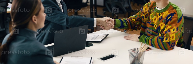 Бизнесмены пожали друг другу руки на встрече