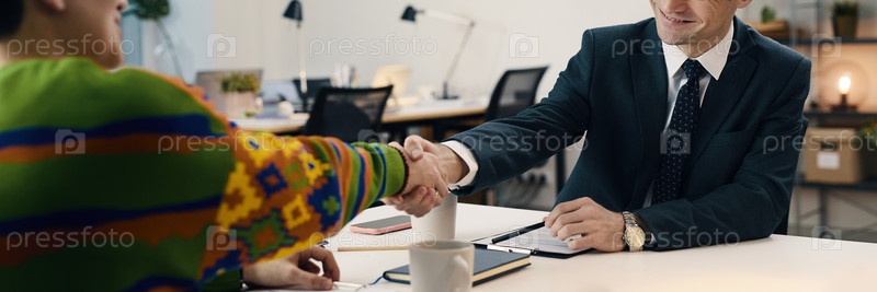 Бизнесмен пожимает руку кандидату на работу