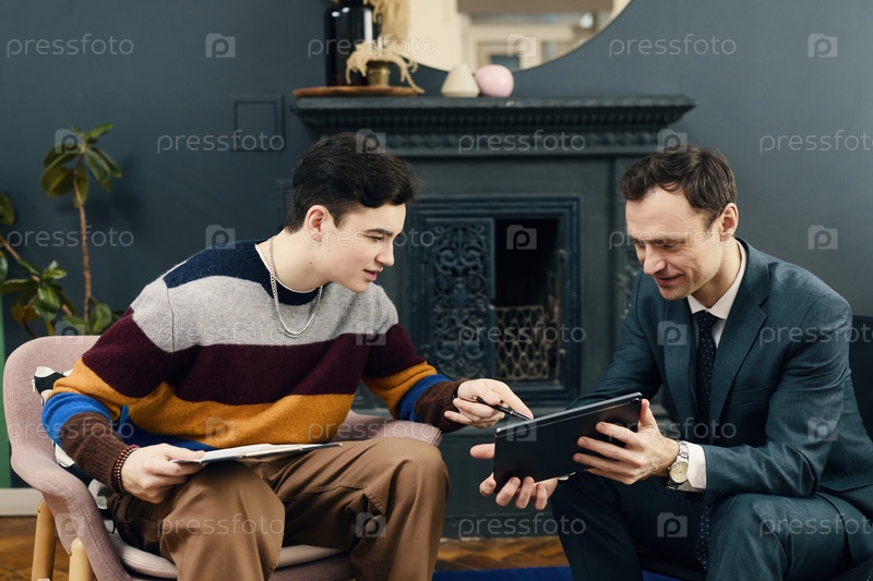 Коллеги обсуждают документ онлайн на планшетном ПК
