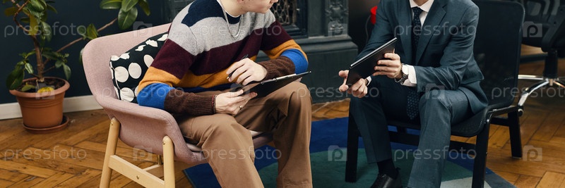 Коллеги обсуждают онлайн-работу на планшетном ПК